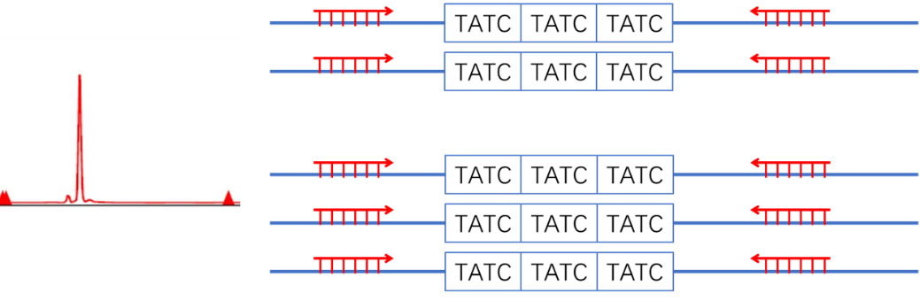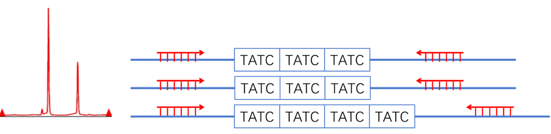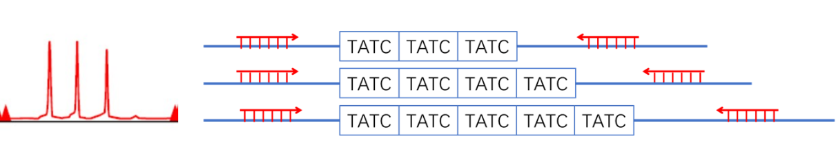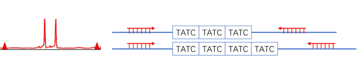 - 下图为依据多态性遗传标记判断目标染色体倍型的基本原理示意。本产品同时配备了等位基因标准品(Ladder),可对相应遗传标记的基因型进行精确命名,可用于样本的个体识别与样本间亲源关系溯源。