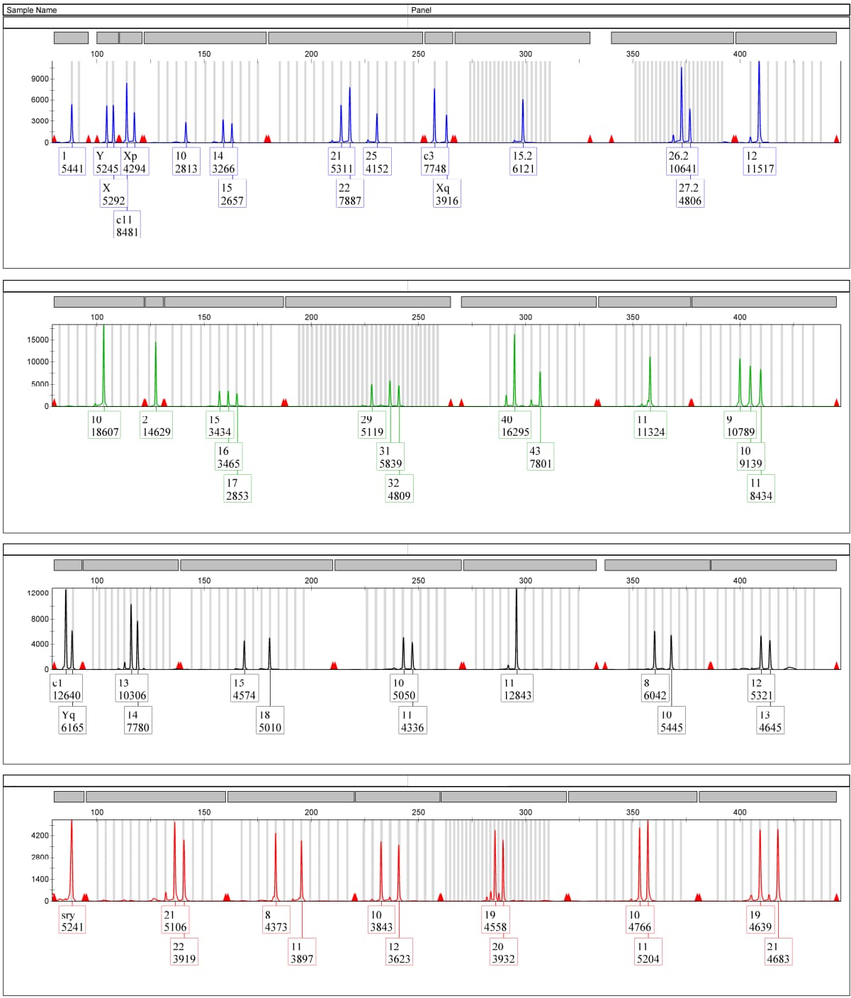 - 本产品采用复合荧光多重PCR毛细管电泳技术(QF-PCR),通过检测人类基因组DNA样本中,21号染色体上8个STR、18号染色体上6个STR、13号染色体上6个STR、X染色体以及Y染色体上10个遗传标记,合计30个遗传标记,依据遗传标记的分型结果判断目标染色体的数目,即倍型。